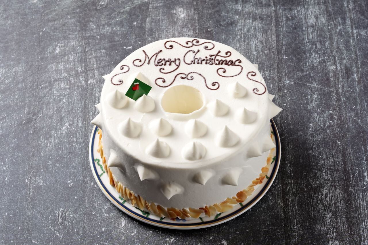 この王様のシフォンケーキ®をクリスマスアレンジにしました。シンプルなデザインでご自分でフルーツやロウソクなどでデコレーションも楽しめます!